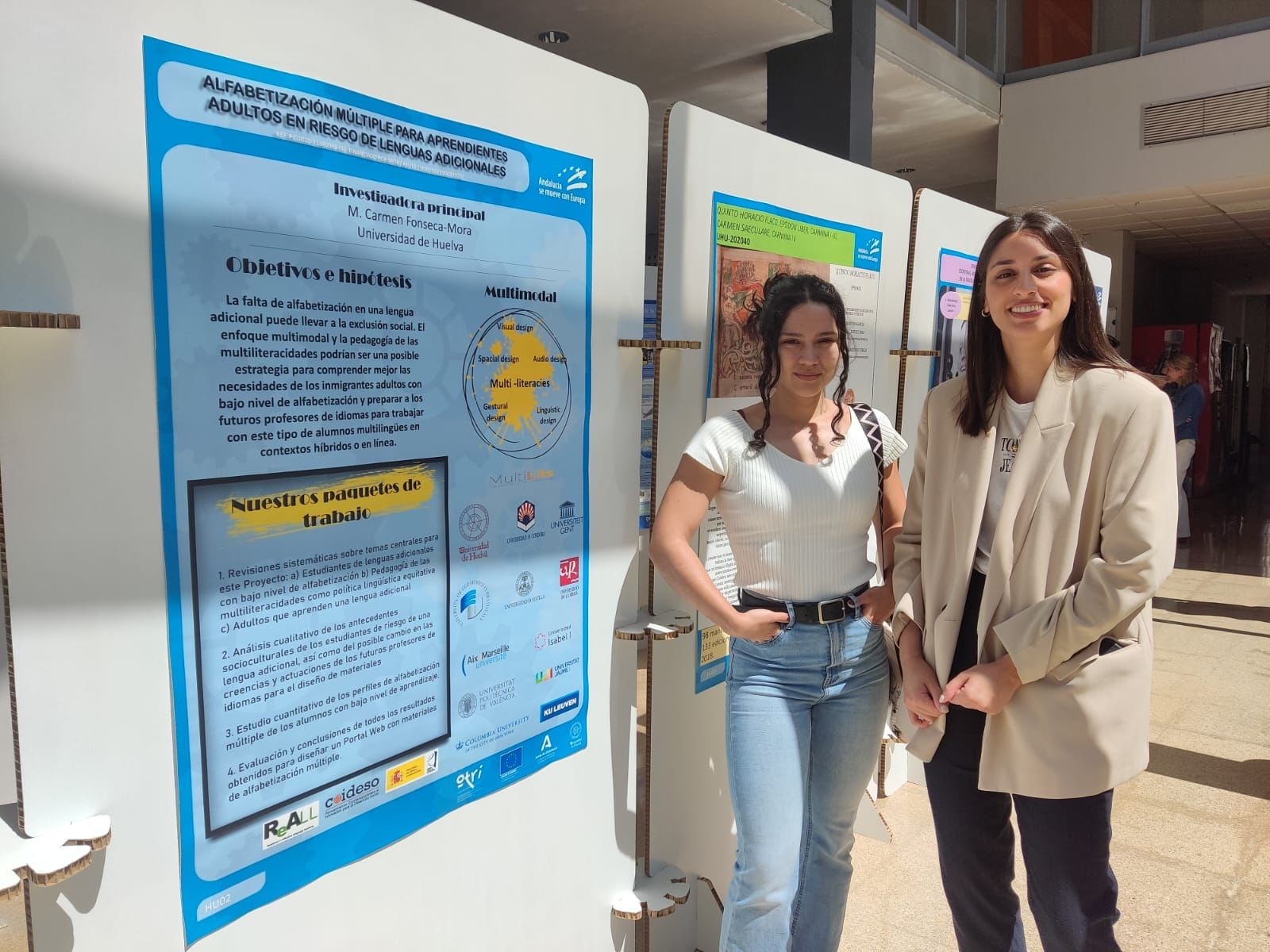 La jornada Transfiriendo UHU tuvo dos objetivos complementarios: 1. Que las empresas/instituciones y el personal investigador conocieran las distintas formas de colaboración entre sí de que disponen y sus ventajas. Para ello, el día 20 de abril de 2023 tuvo lugar una conferencia y una mesa redonda. 2. Que las empresas/instituciones conocieran el conocimiento/tecnología que se genera en la Universidad. Por tal razón, el hall de la Facultad de Trabajo Social se tiñió de ese conocimiento en forma de pósteres ordenados por materias.